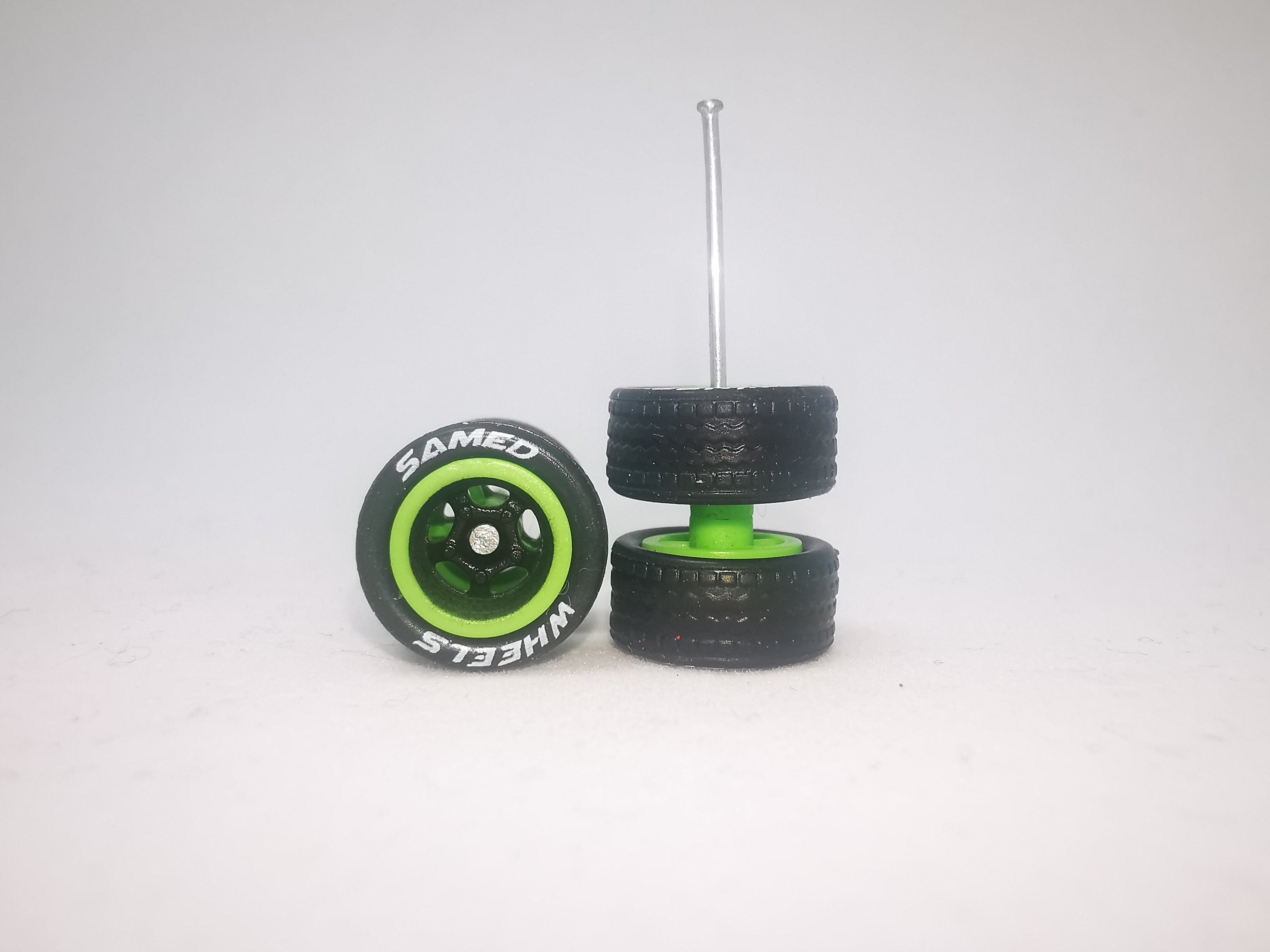 5 bolt 10 mm black green rin, black tire with letter