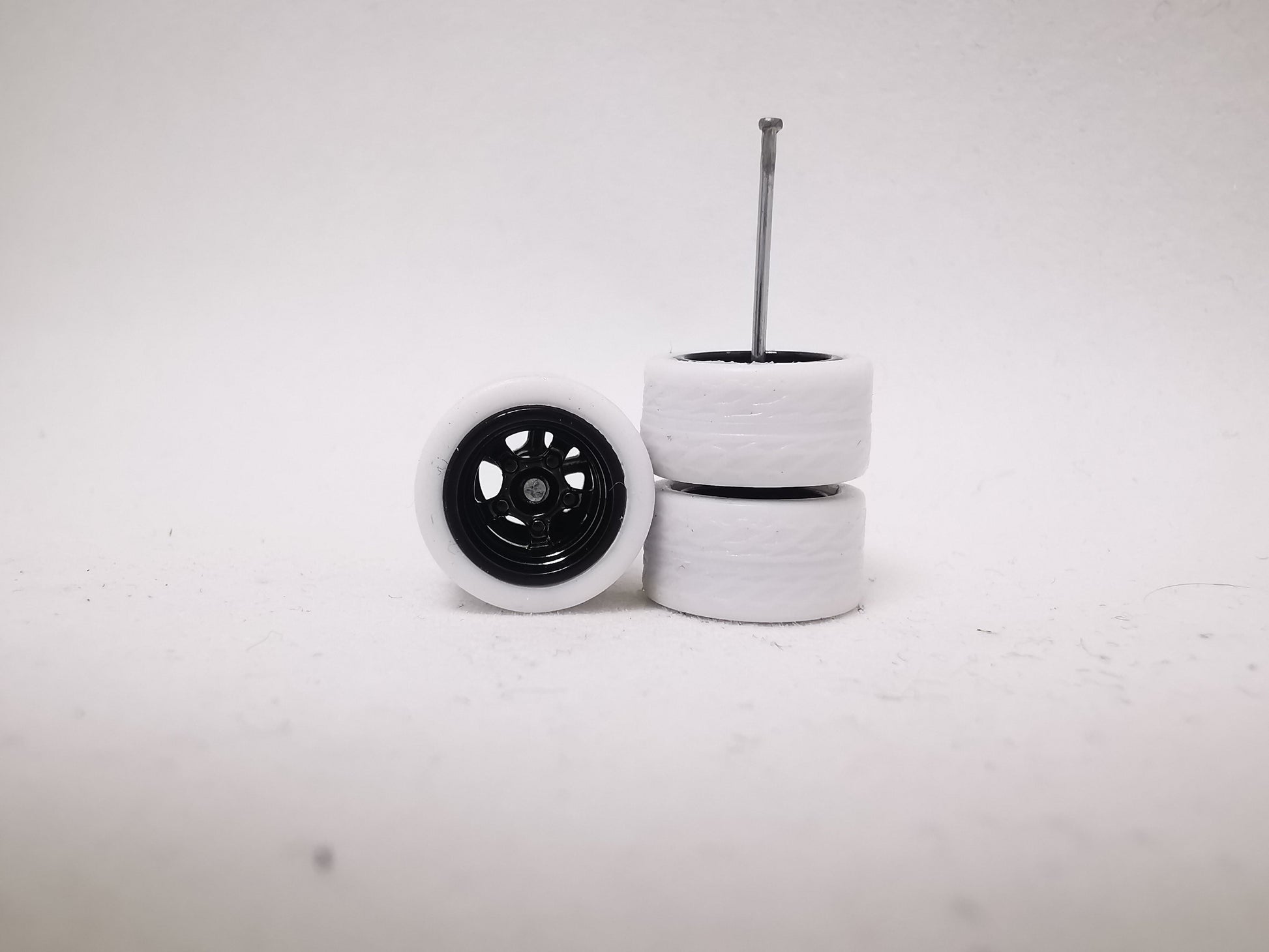 Each set includes 4 wheels, 4 rubber tires and 2 axles.